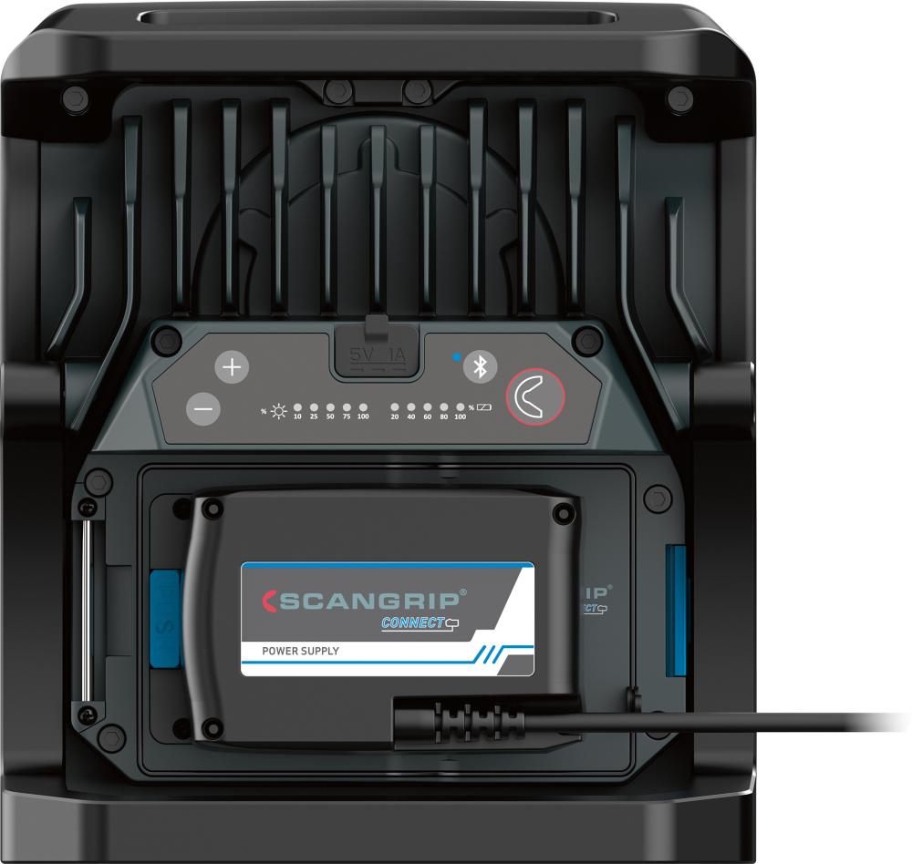 • Betrieb direkt über 18-V-Akkus des CAS-Systems oder Scangrip-CAS-Netzteil sowie 18/20-V-Akkus führender Elektrowerkzeugmarken unter Verwendung eines Schnittstellen-Adapters der Connector-Serie