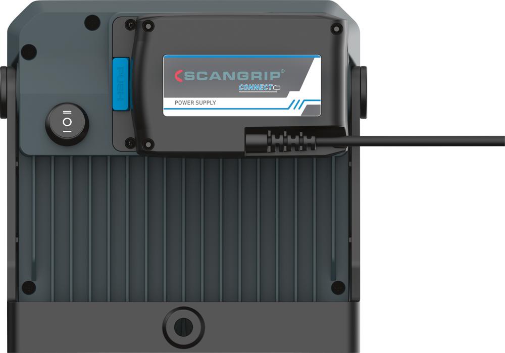 • Betrieb direkt über 18-V-Akkus des CAS-Systems oder Scangrip-CAS-Netzteil sowie 18/20-V-Akkus führender Elektrowerkzeugmarken unter Verwendung eines Schnittstellen-Adapters der Connector-Serie