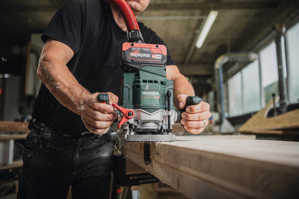 Kraftvolle Akku-Oberfräse mit großem Fräshub von 50 mm für eine Vielzahl von Fräsarbeiten.