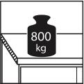 Die Kombiwerkbänke der Serie V haben eine Gesamttraglast von 800 kg mit Hänge-Unterbauschrank. Mit bodenstehendem Sockelschrank beträgt die Gesamttraglast 1000 kg.
