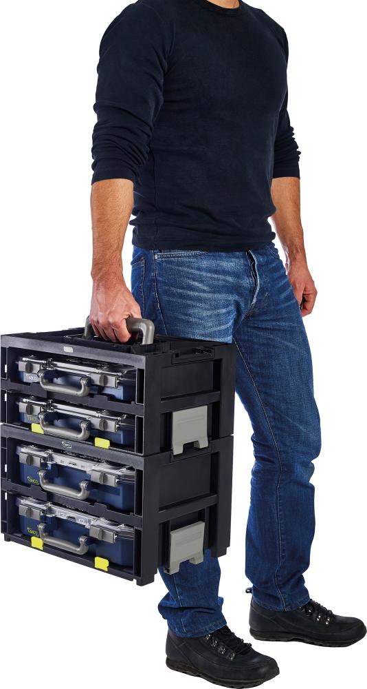 Dieser Tragerahmen ist mit 2 CarryLite 80 4x8-9 Sortimentskoffern bestückt. Für den leichten Transport mit CarryMore-Trolley kombinierbar.