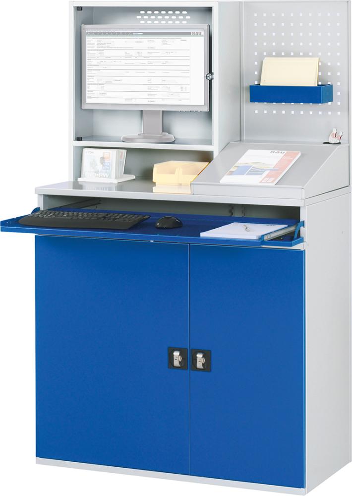 Diese Computer-Schränke verfügen über eine abschließbare Tastaturklappe mit Tastaturauszug.