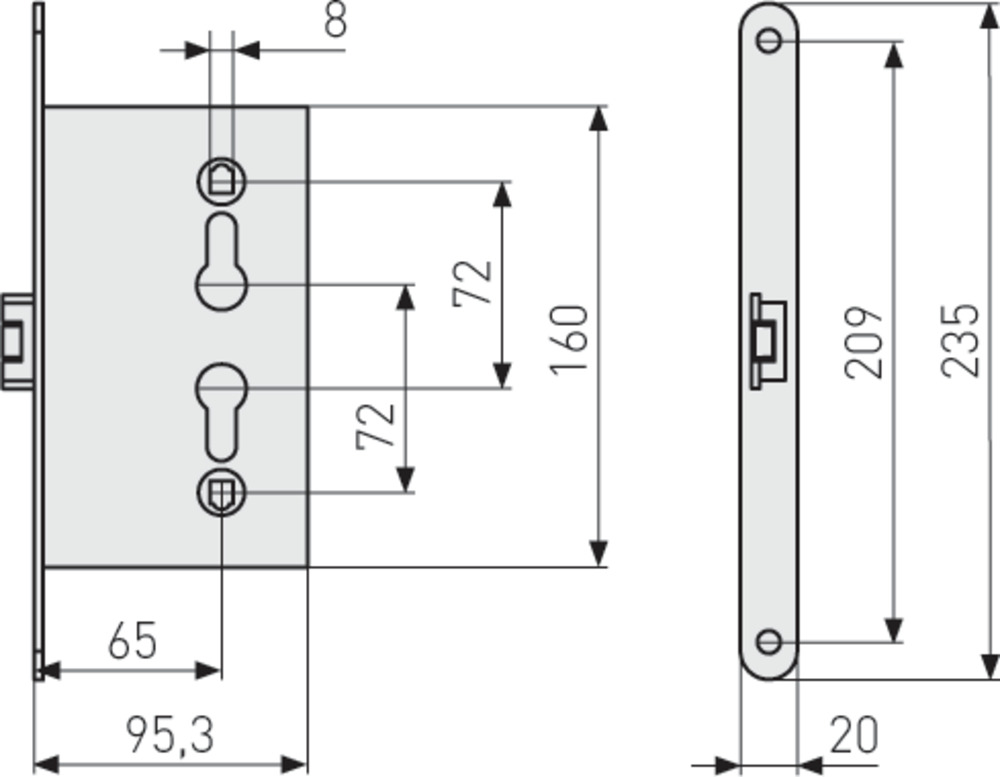 Einsteckschloss ES SI PZ LR Z 65 72 20 EK