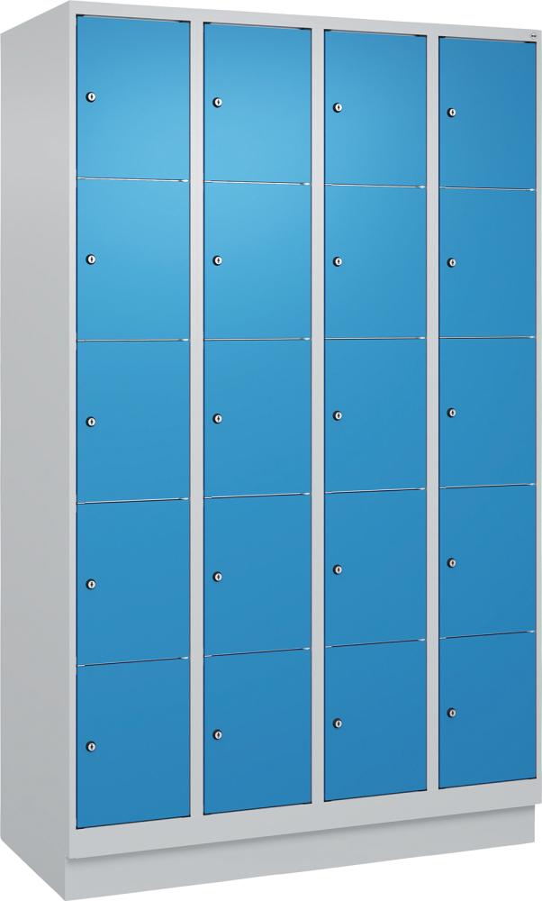 Fächerschrank CLASSIC B1200xT500xH1950 mm RAL 7035/5012, 4x5 Fächermit 100 mm hohem Sockel