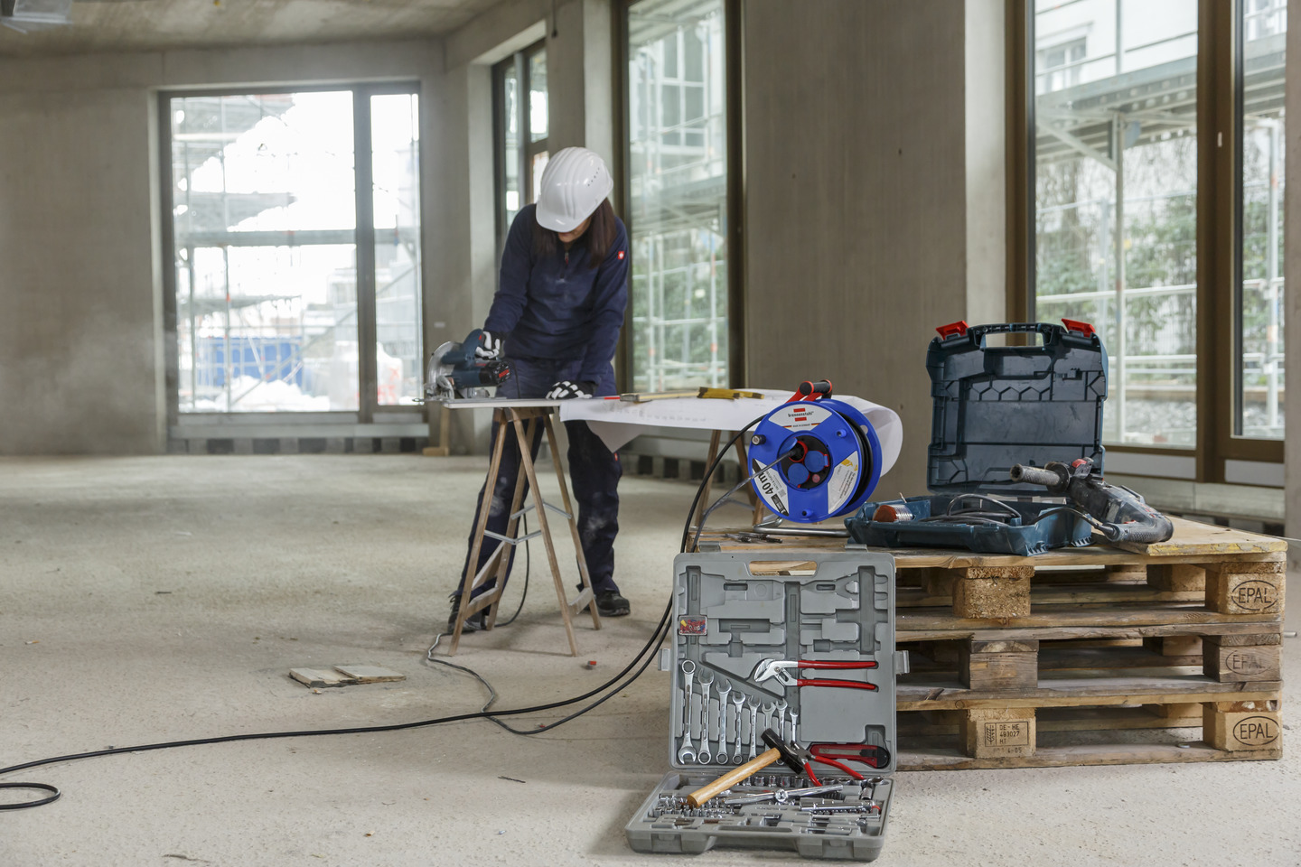 Die Garant IP44 Gewerbe-/Baustellen-Kabeltrommel mit 40m Kabellänge in der Farbe blau von Brennenstuhl eignet sich ideal für den Baustelleneinsatz und den Einsatz im Freien. Sie überzeugt außerdem durch folgende Eigenschaften: