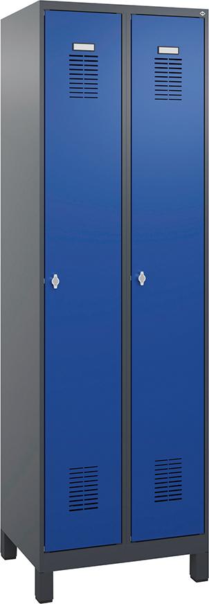 Garderobenschrank FORUM 2 Abteile RAL 7016/5010 Füße 7035 mit Füßen Selbstmontage