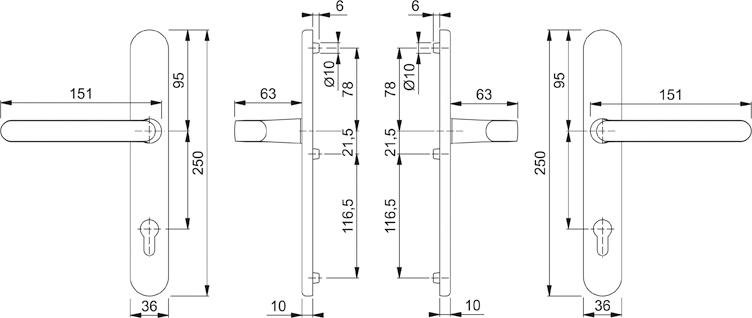 • HOPPE-Aluminium-Schmalschild-Türgriff-Garnitur für Profiltüren