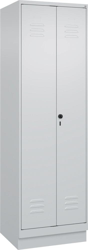 Produktinformationen "Raumpflege-Schr. CLASSIC B600xT500xH1950 mm RAL 7035/7035, 2 Abteile mit 100 mm hohem Sockel"