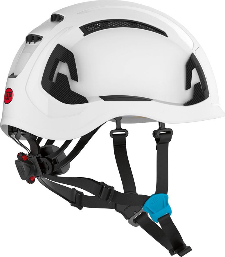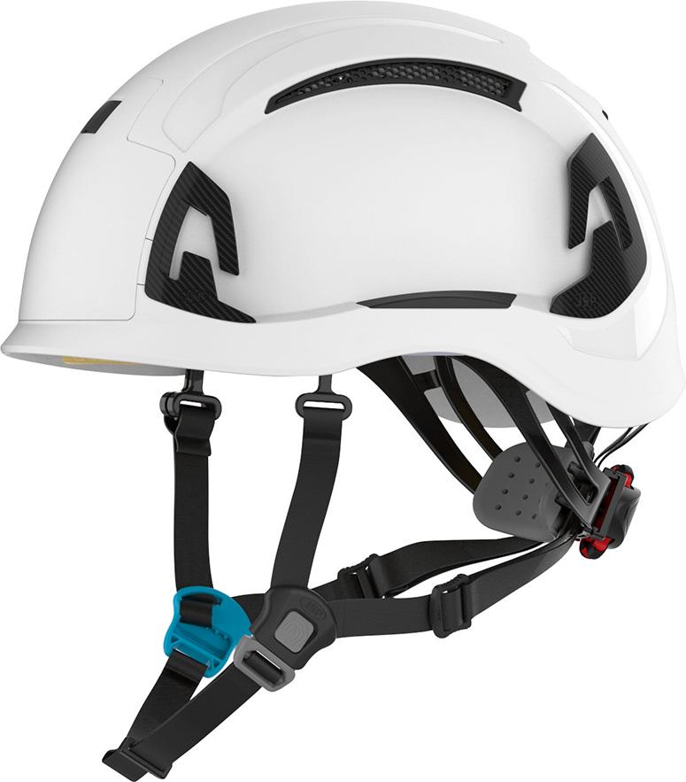 • 4-Punkt Kinnriemen, der so konzipiert ist, dass er auch unter Krafteinwirkung sicher bleibt und die Sicherheit bei einem Sturz maximiert