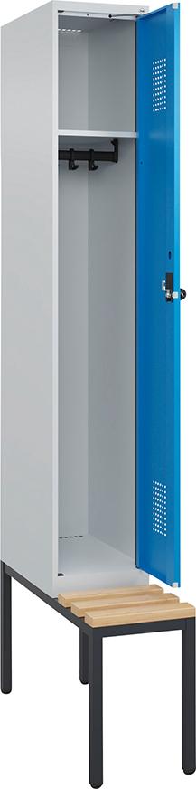 Garderobenschrank Evolo PLUS mit untergebauter Sitzbank (Holzleisten)