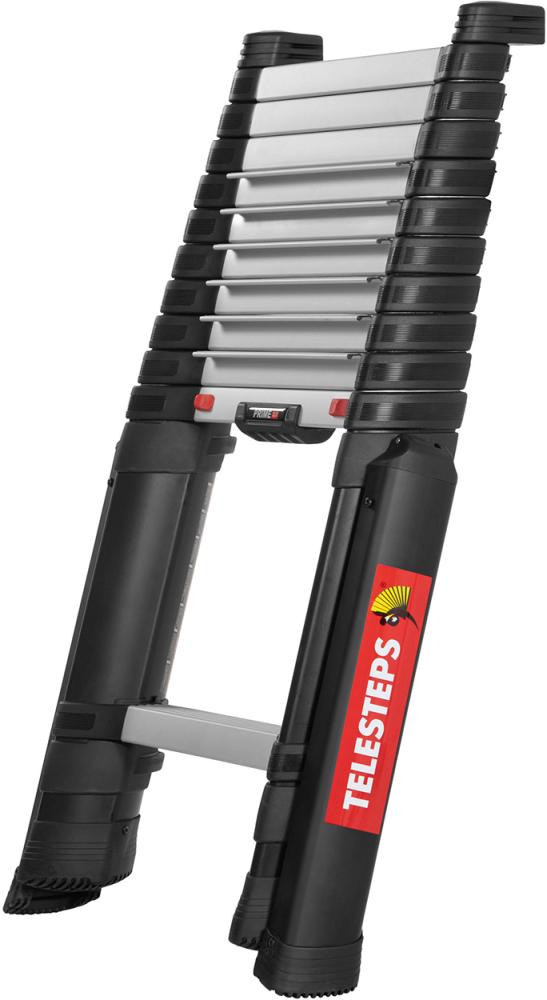 Diese platzsparende und flexible Teleskopleiter passt zusammengeschoben in jeden Kofferraum.