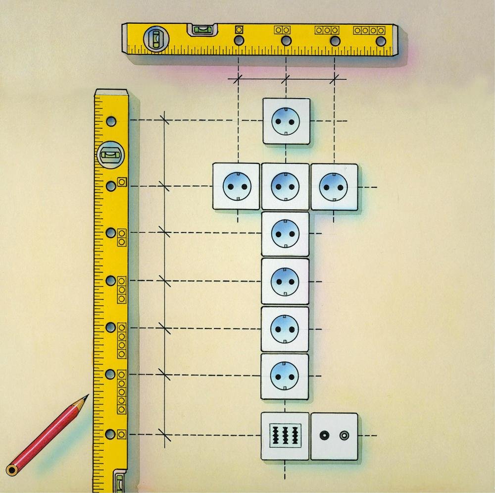 • 4 Markierkerben im Abstand von 71 mm (Normabstand Schalter/Steckdosen)